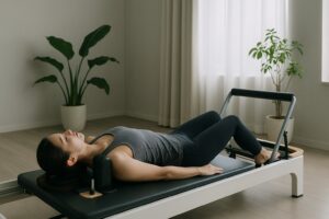 リフォーマーを使うことで、骨盤を中立に保ちながら効果的に腹筋を刺激できます。